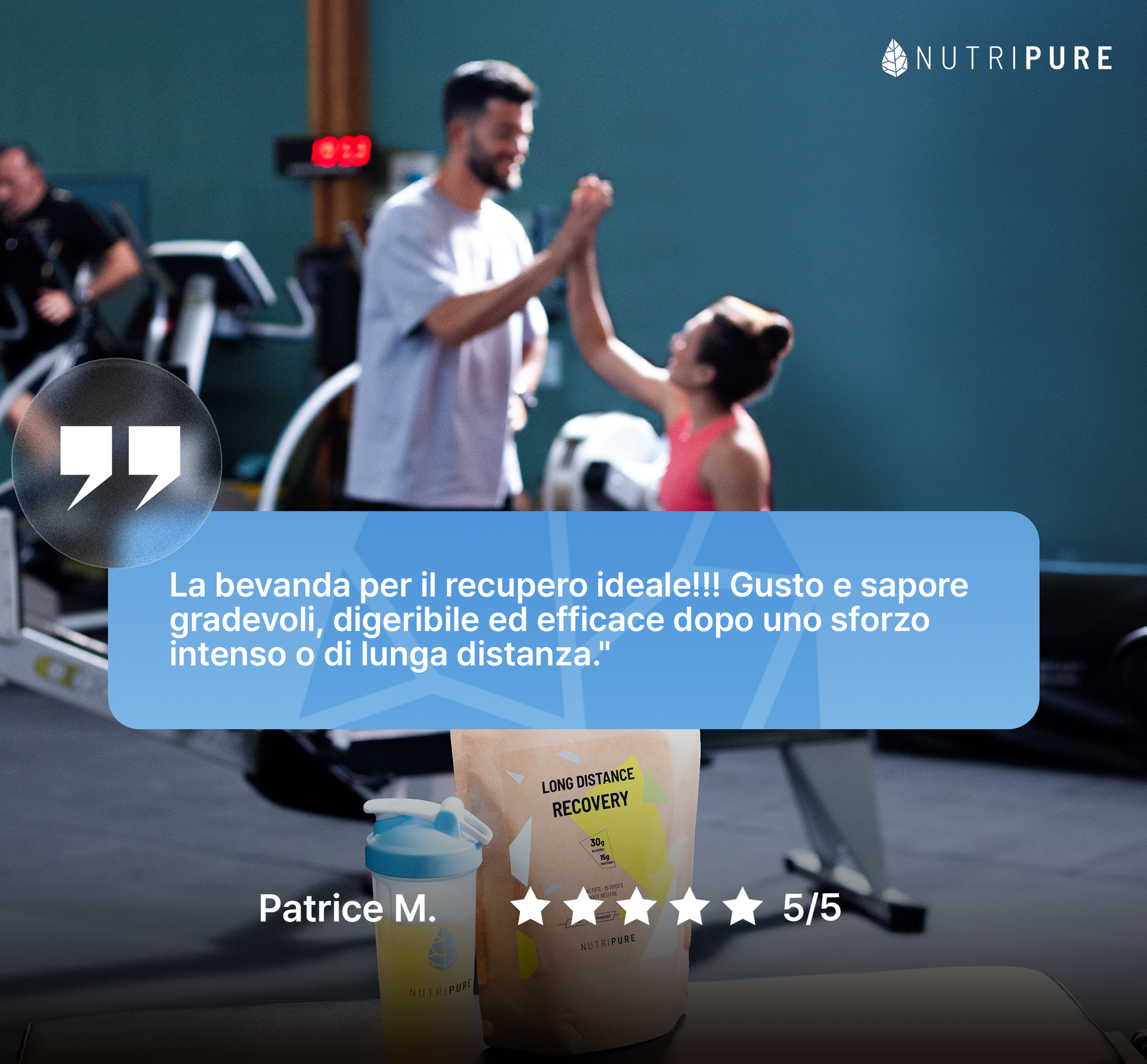 Prendo Long Distance Recovery dopo le mie lunghe corse o le lunghe sessioni Hyrox: è diventato il mio nuovo rituale per recuperare bene e poter proseguire [con gli allenamenti] senza problemi fisici o cali di stanchezza. Pratico, completo, efficace, rispetta davvero tutti i requisiti!