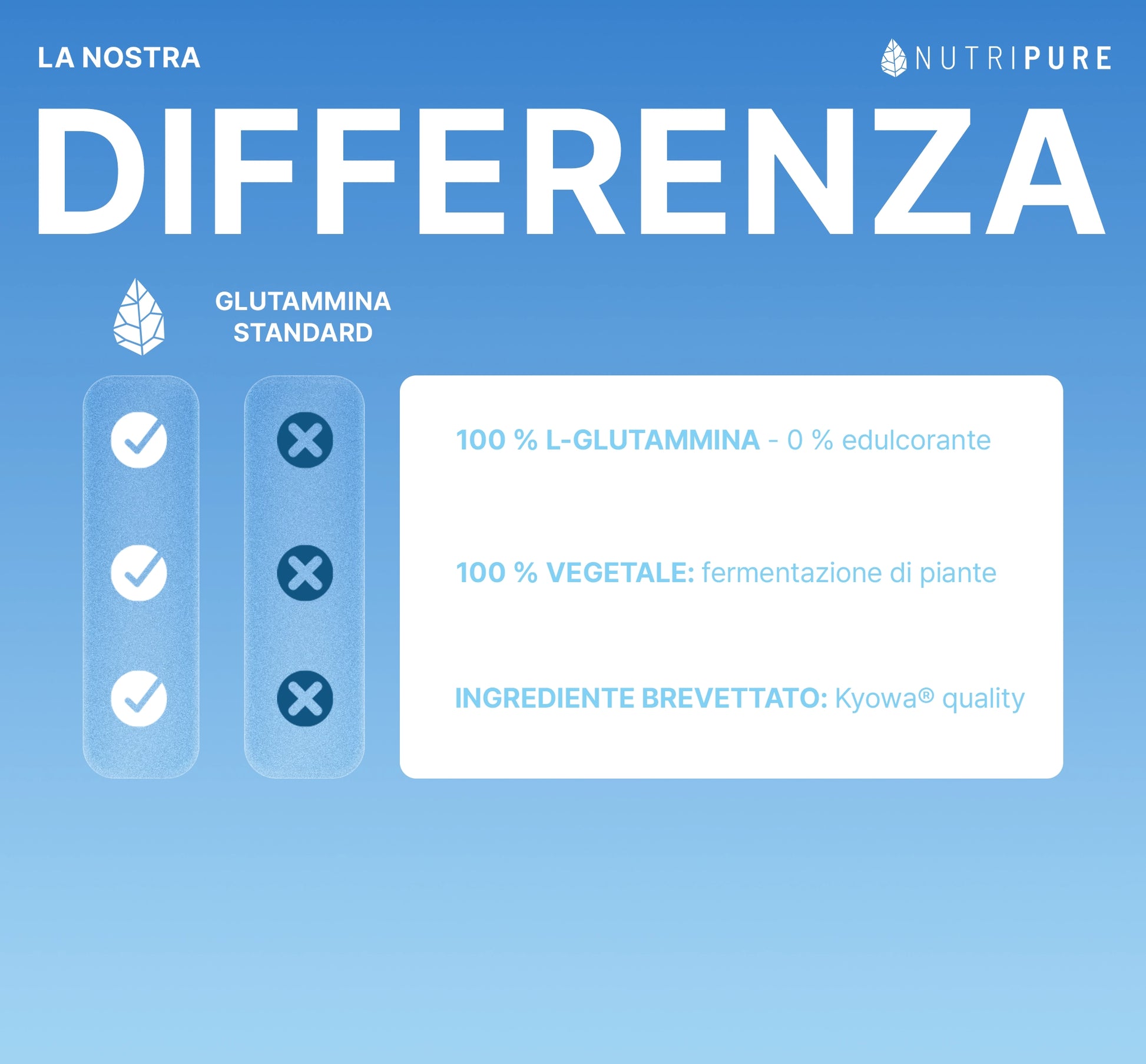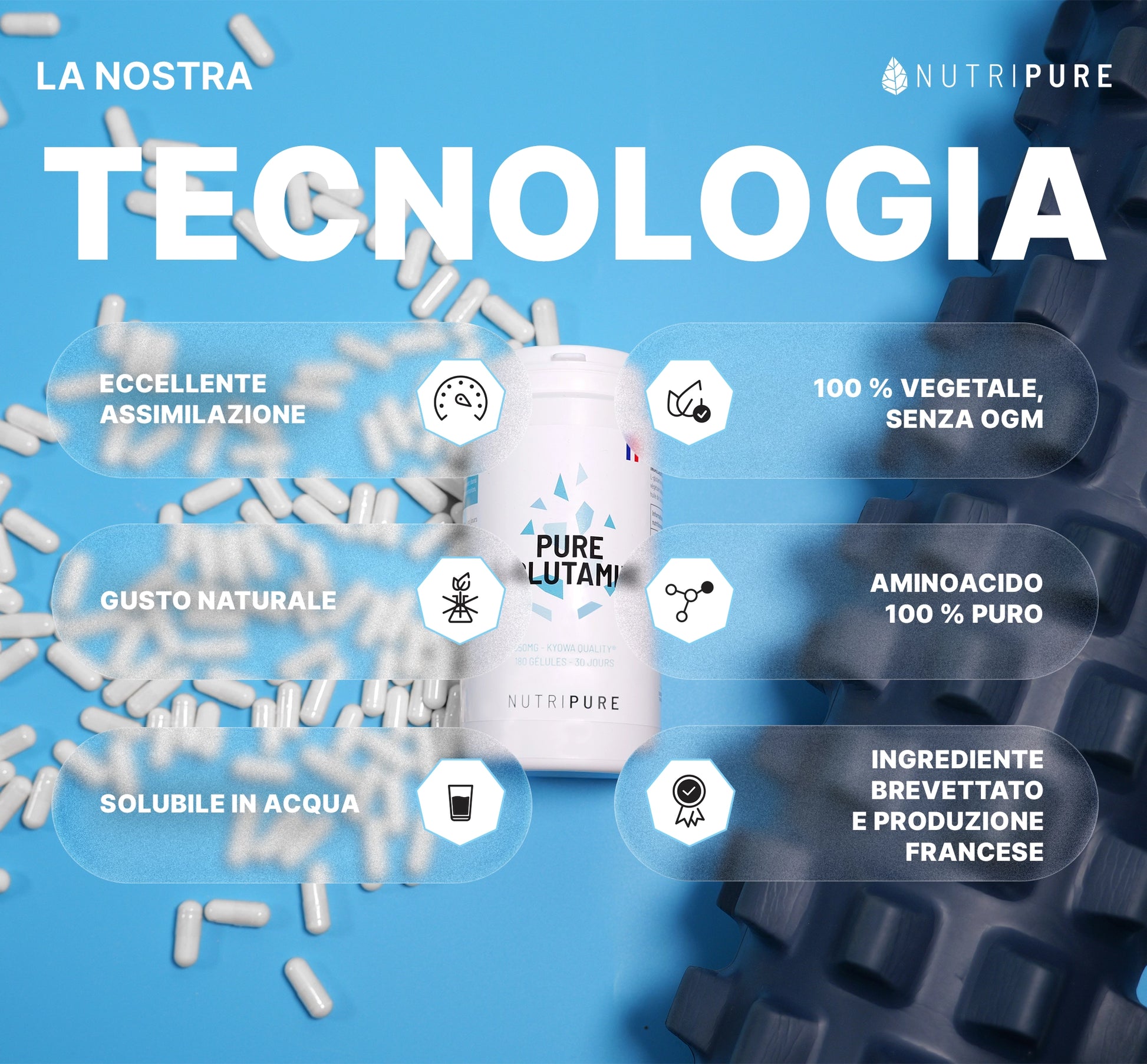 La L-Glutammina di Nutripure si distingue per la sua purezza e il suo origine vegetale, offrendo una soluzione ideale per il recupero muscolare degli sportivi.
