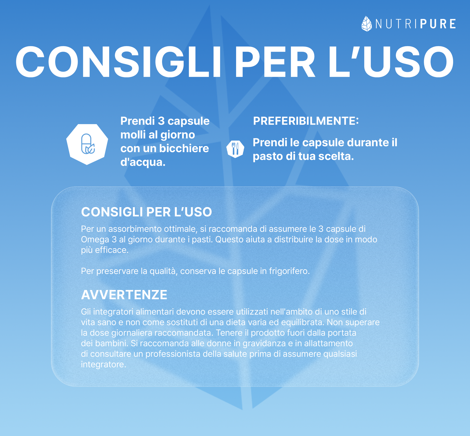 Inoltre, ti consigliamo di conservare gli omega 3 in frigorifero, in un luogo fresco e al riparo dalla luce.