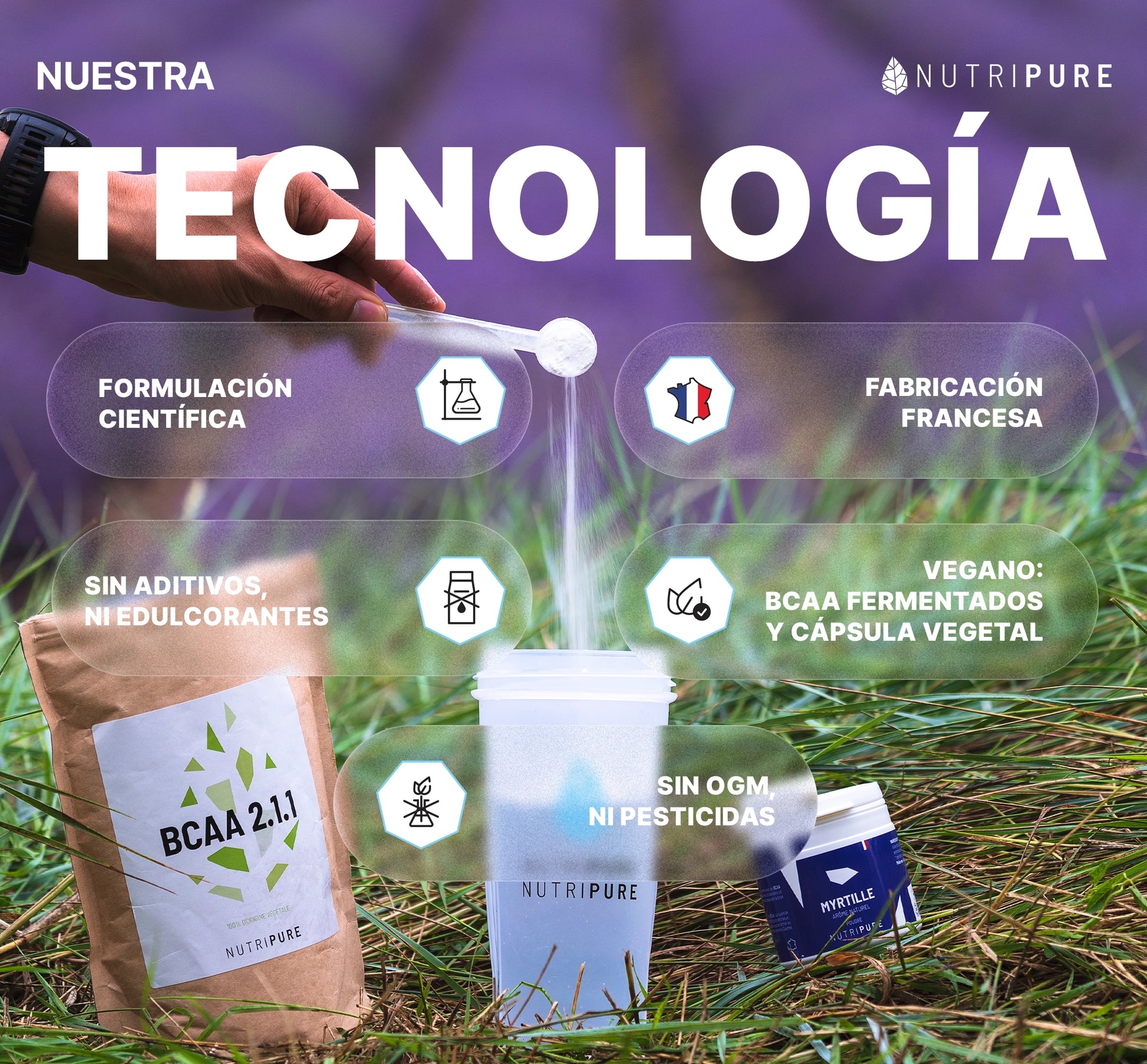 - Por la pureza y el origen vegetal: elegir nuestros BCAA es rechazar las fuentes animales opacas como las plumas. Nuestro proceso de fermentación garantiza un producto puro, sin residuos animales y ético. Usted sabe exactamente lo que da a su cuerpo.