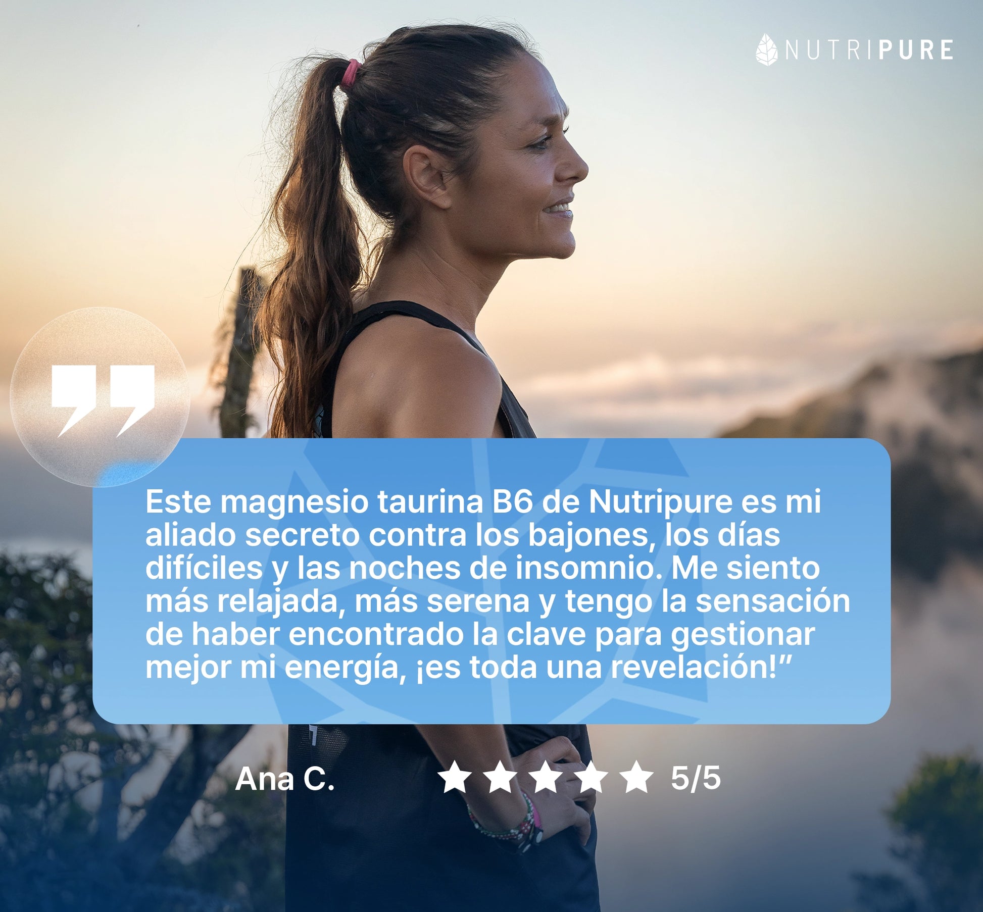 Este magnesio ha cumplido todas mis expectativas: me siento menos ansiosa, duermo mucho mejor y, en consecuencia, me siento realmente con más energía. Además, antes tenía con frecuencia síntomas de falta de magnesio, como el párpado que tiembla o mareos, y todo eso se ha reducido considerablemente.