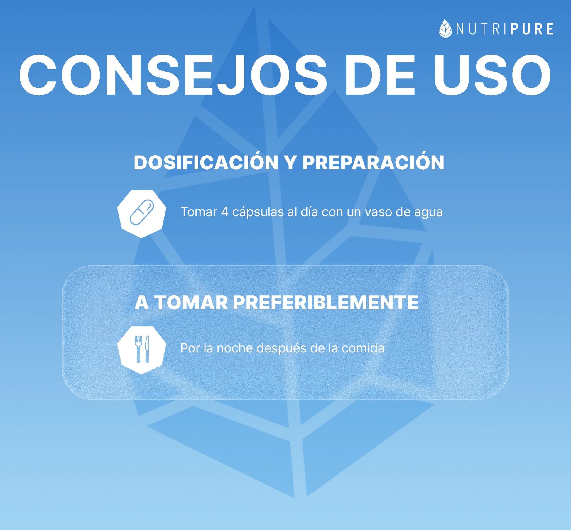 🕑 Posología : Tomar 4 cápsulas al día con un vaso de agua