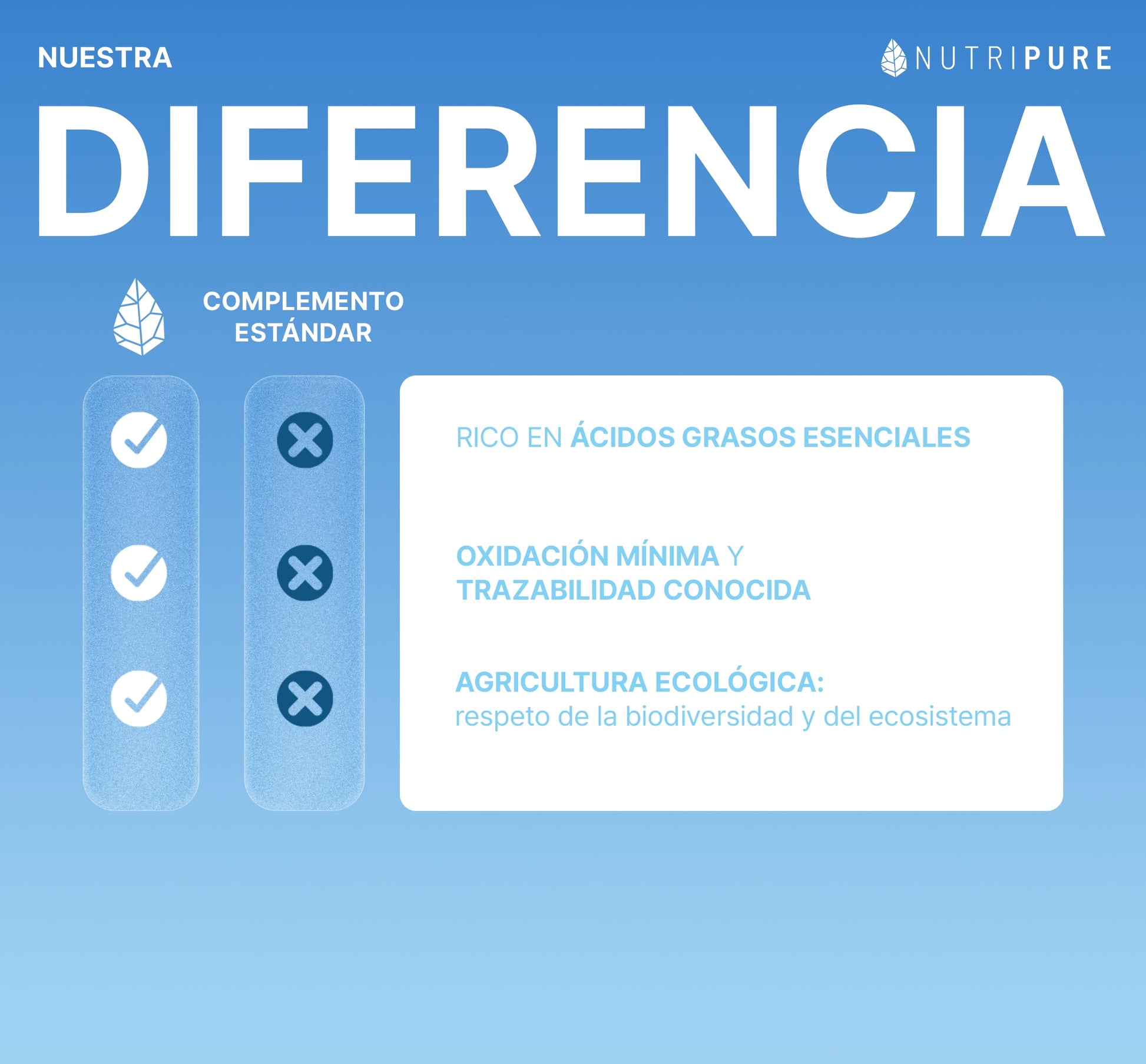Ideal para completar sus aportes de ácidos grasos esenciales encontrados especialmente en la piel.