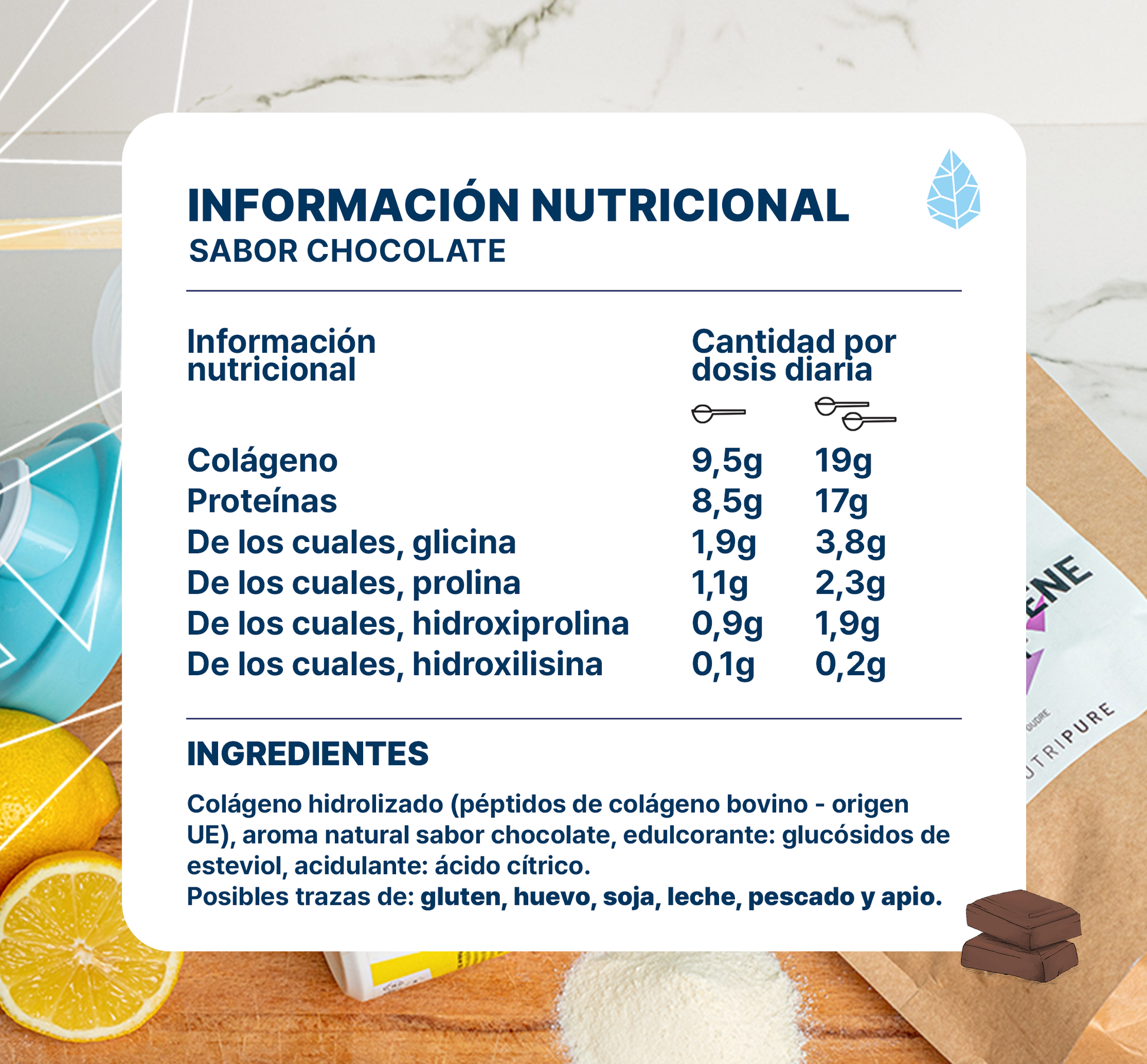 Complemento alimenticio a base de hidrolizado de colágeno.