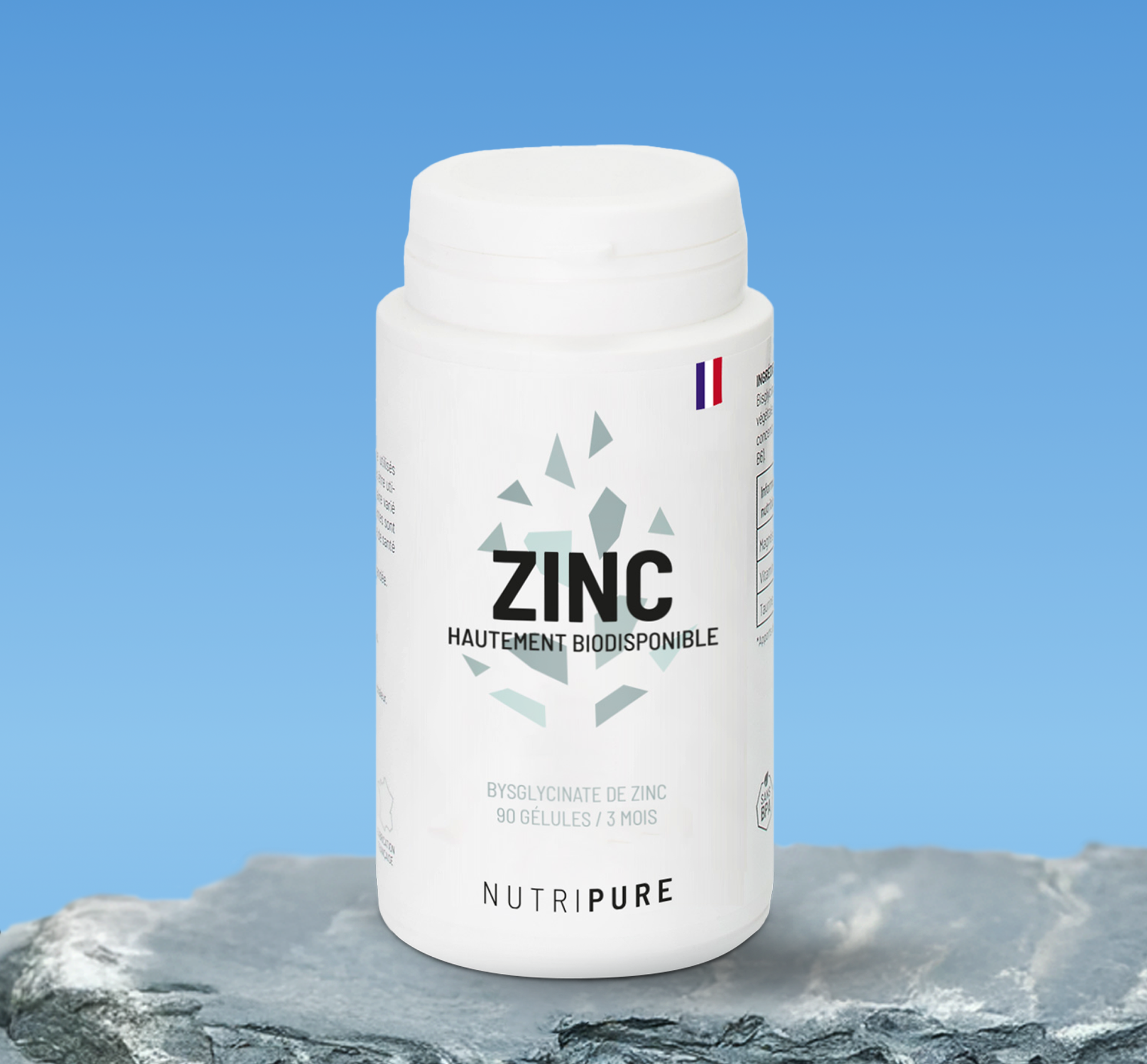 Al igual que para su magnesio y su hierro, Nutripure ha elegido la forma bisglicinato. En un suplemento alimenticio en forma bisglicinato, el zinc está quelado con dos ligandos de glicina para tener la mejor asimilación. Los aminoácidos del bisglicinato (asociación de 2 aminoácidos de glicina) favorecen la absorción de este mineral que resiste la acidez del estómago. El zinc llega a la sangre más fácilmente.