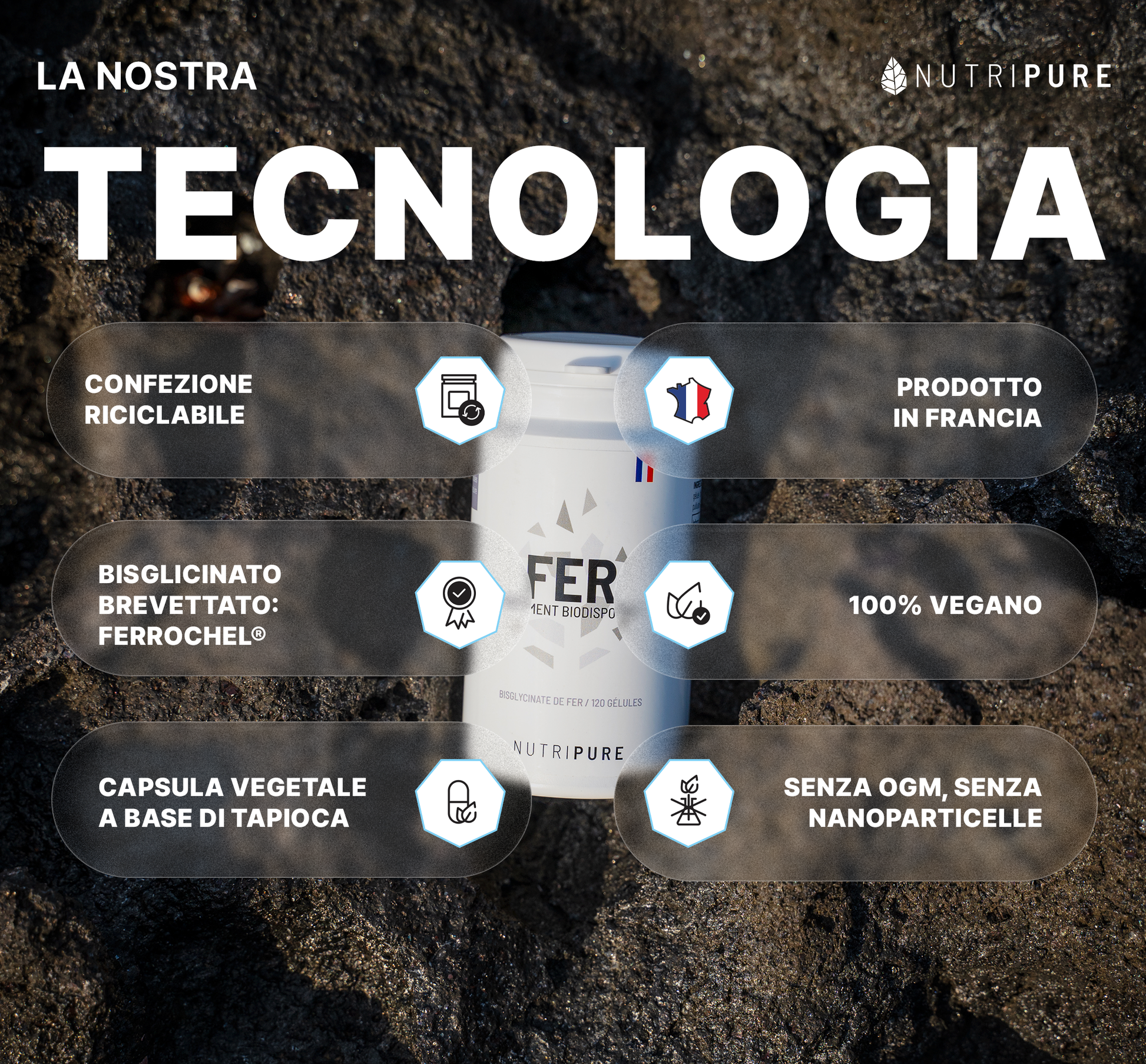 Per garantire un’efficacia senza pari, Nutripure utilizza un ingrediente certificato Ferrochel™.