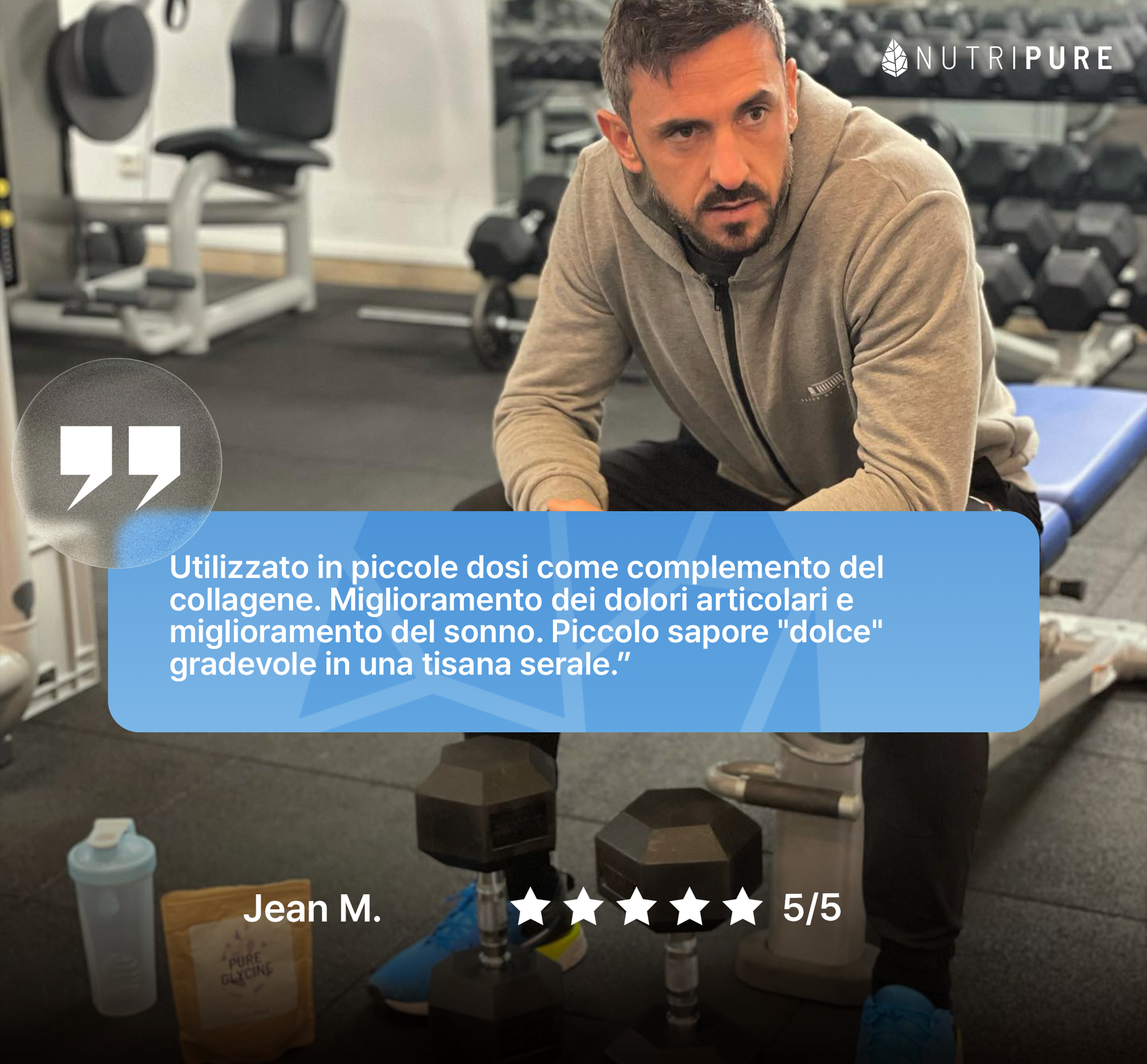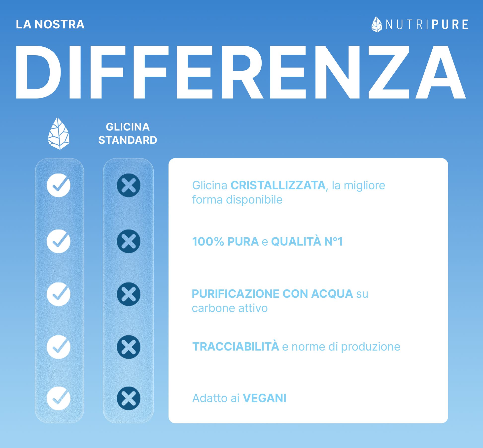 Aminoacido polivalente, principale costituente del collagene. È l’alternativa vegana ideale al collagene (marino o bovino) per i tessuti connettivi.
