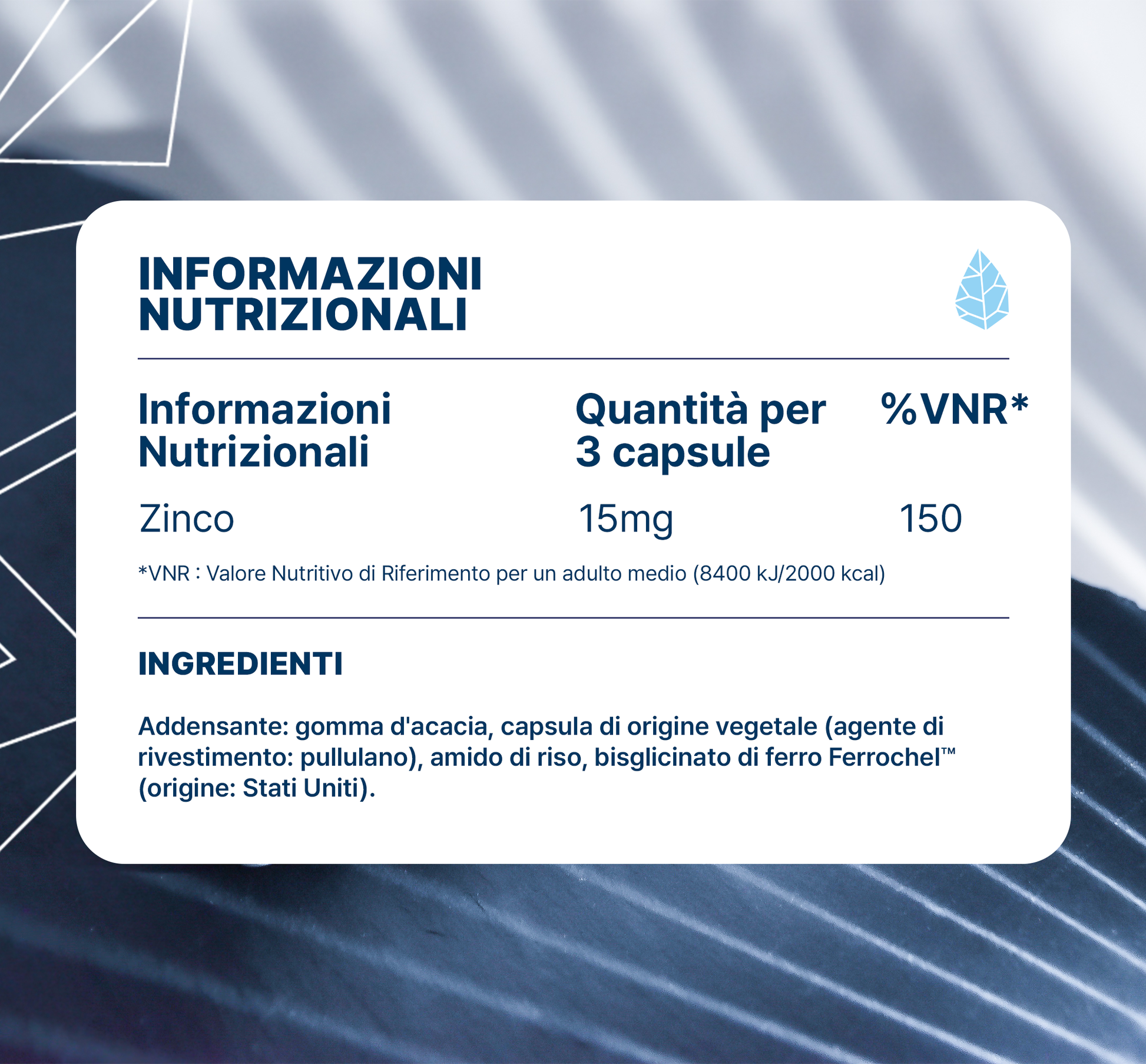 L’integratore alimentare di zinco in capsule è stato formulato per rispondere alle esigenze di: