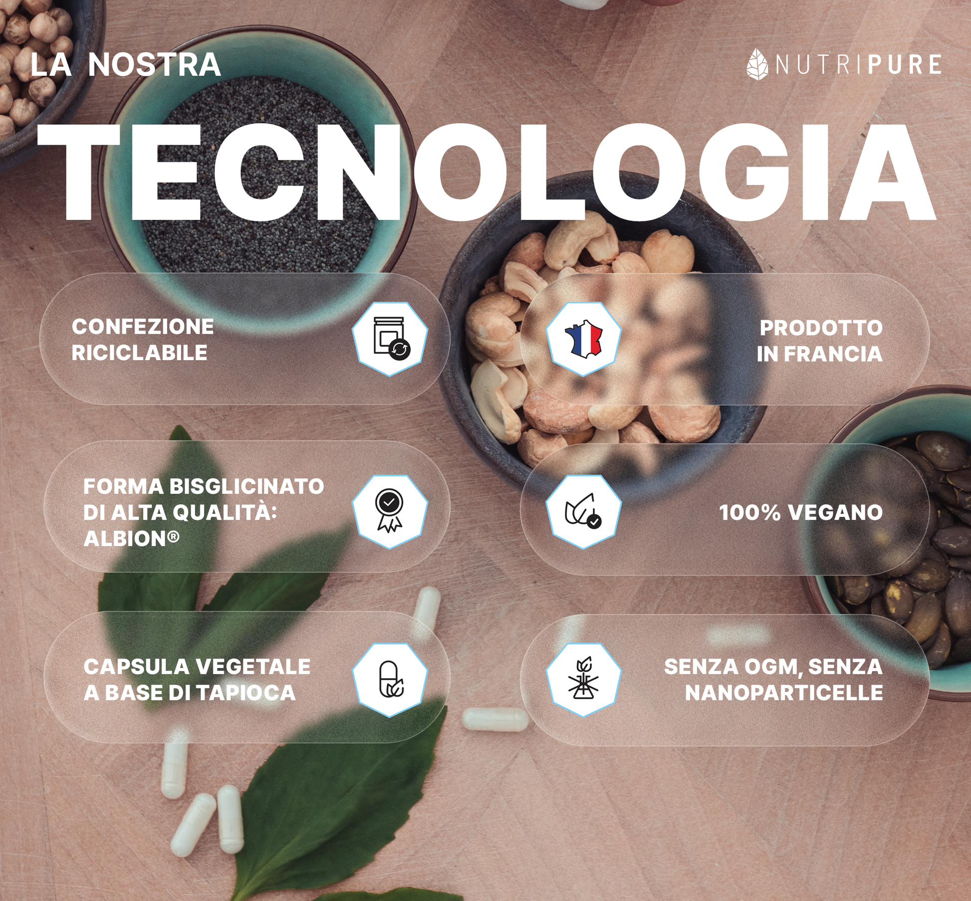 Come per il magnesio e il ferro, Nutripure ha scelto la forma bisglicinata.